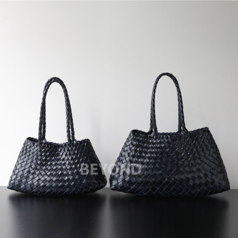 تأتي هذه الشنطة بحجم كبير وتصميم عصري منسوج يدويًا مع فتحة علوية ومقابض طويلة مزدوجة.